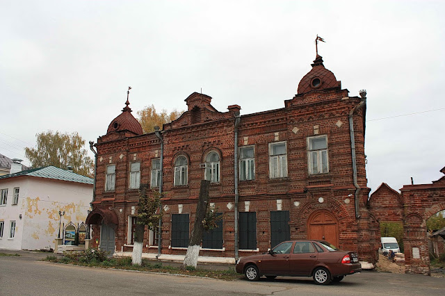 Напротив Благовещенского собора стоит заброшенное здание, построенное в конце XIX века как начальное училище.